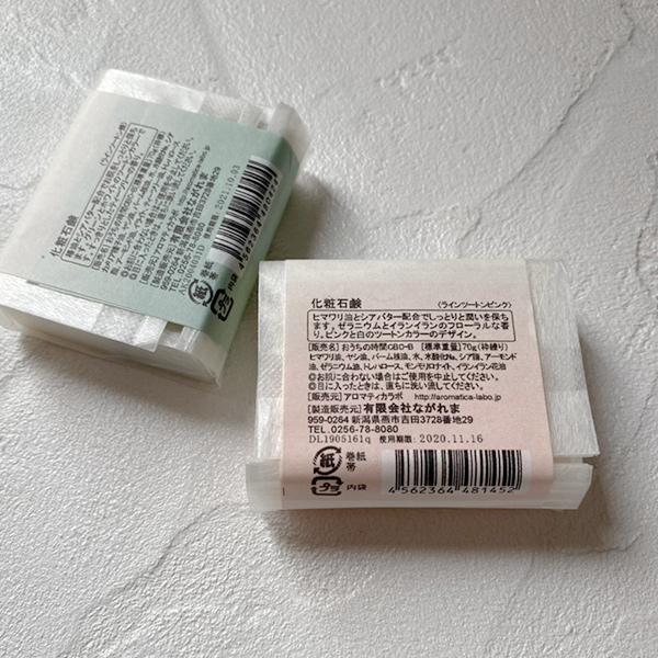 石鹸を真空パックし、ダンボール風の巻き紙で巻いたものです。
