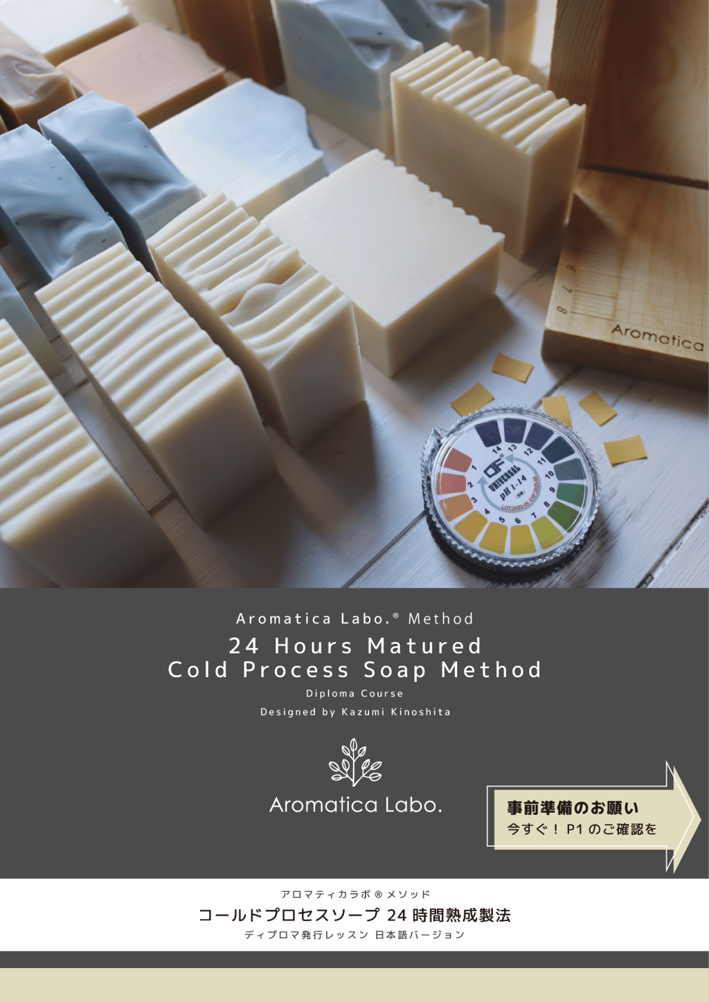 従来のCPソープの材料を使用し、Aromatica Labo.®︎メソッド コールドプロセスソープ24時間熟成製法の基本の作り方を学びます。