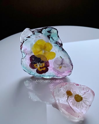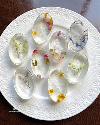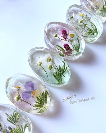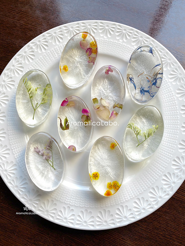 ・美しいお花で魅せる、ハーバリウムソープ(アミノ酸石鹸)の作り方について、2種類の素材と3つの技法で学びます。