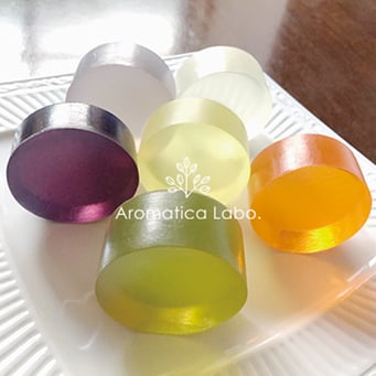 材料・性質の異なる5つの透明石鹸のレシピと、グラデーション透明石鹸の作り方を学びます。